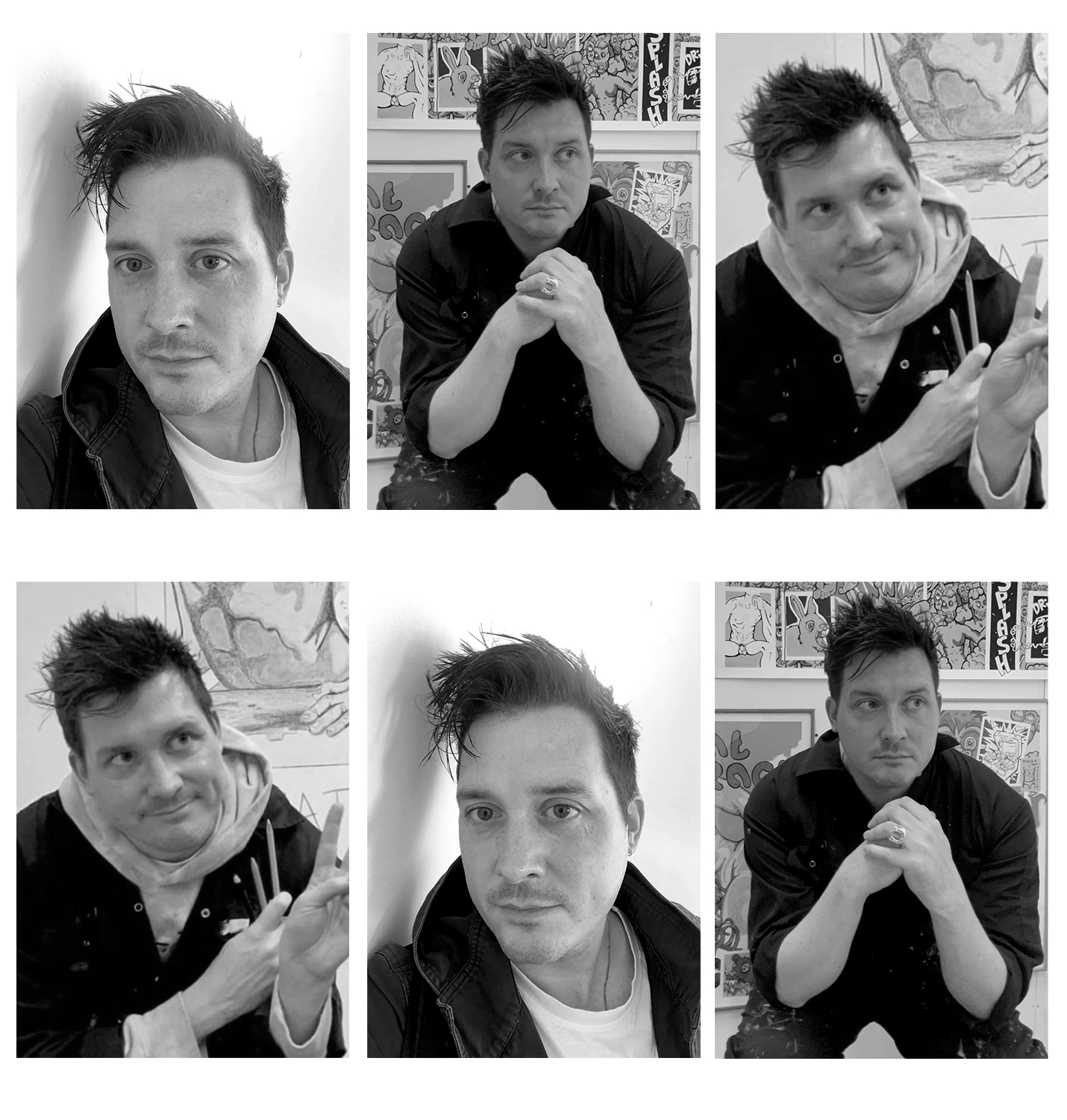 Ferg Cooper is a visual artist working primarily in painting, drawing, and photography. His Queer Pop Art is rooted in queer theory and blends life drawing with horror themes and comic book tropes. Influenced by Francis Bacon and David Hockney, his work often combines idealised male bodies with bold colour palettes and cartoon imagery to explore queer existence within a heteronormative society.
