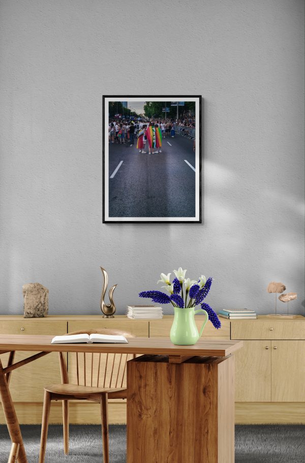 In Unity in Diversity, Anton Parfenov captures the spirit of togetherness at a pride parade, where the rainbow flag becomes a symbol of both individuality and collective identity. The three figures in the foreground, wrapped in the vibrant colors of the LGBTQ+ flag, stand united, facing a crowd that stretches as far as the eye can see. This image speaks to the strength found in community and the beauty of diversity, a testament to the shared journey of love, acceptance, and pride. It invites the viewer to reflect on the powerful unity that pride represents, even within the rich variety of experiences and identities.